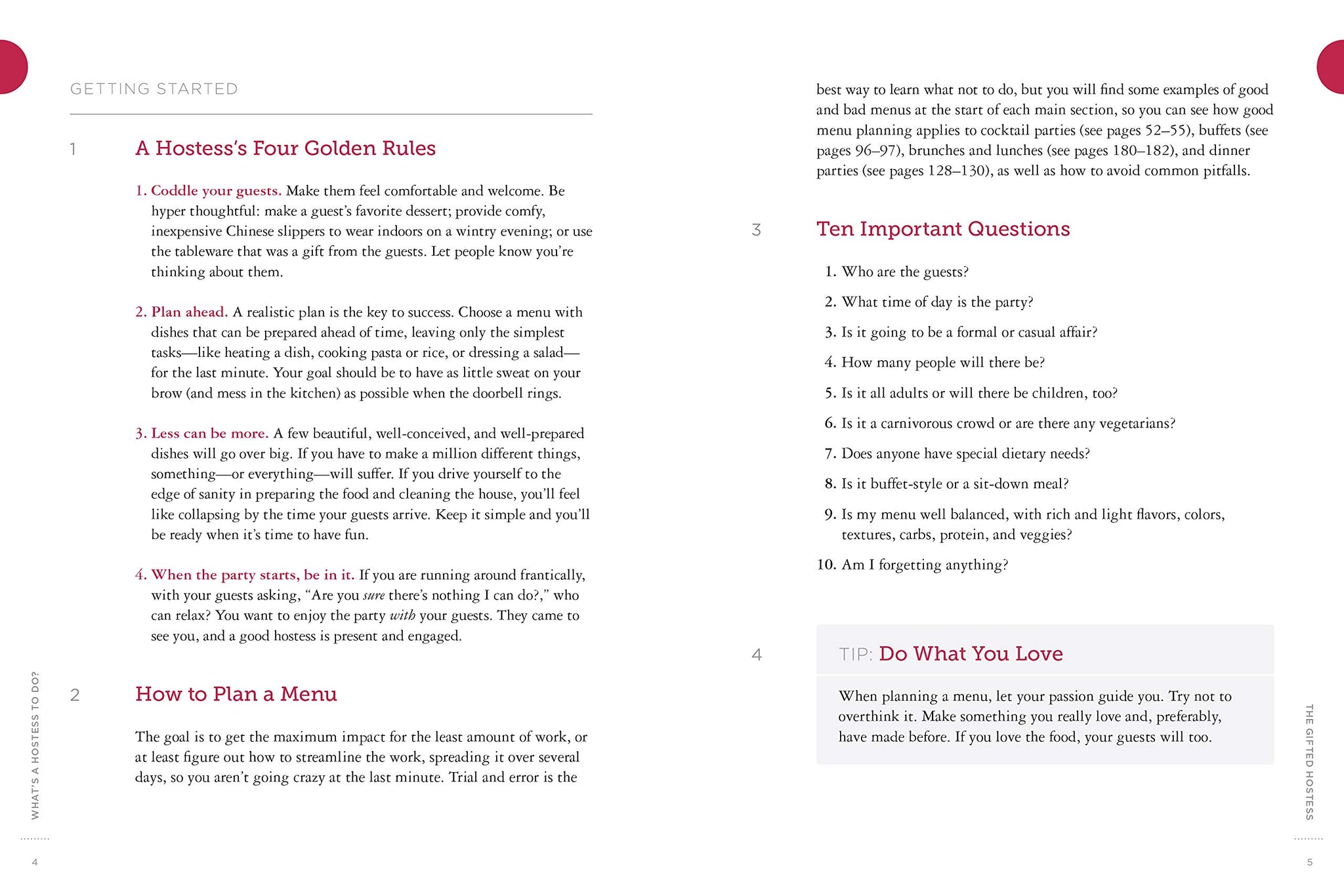 In What's a Hostess to Do?, entertaining expert Susan Spungen explains everything you need to know to host a party effortlessly and with elegance. Susan shows the hostess how to make it look easy--whether the occasion is an informal brunch, a sit-down dinner, a buffet for a crowd, or an impromptu birthday celebration. It's all arranged in 313 easy-to-digest entries that take readers through every aspect of entertaining. The tips are time-saving ("Ten Great Assembled Dessets"), money-saving ("In Praise of Cheap Wine"), energy-saving ("Ten Jobs to Delegate"), and face-saving ("How to Handle Uninvited Guests"), plus there are 121 recipes to make entertaining easier than ever berfore. With helpful illustrations and full-color photographs, What's a Hostess to Do? is a stylish and instructive guide filled with expert advice from a party-throwing pro.