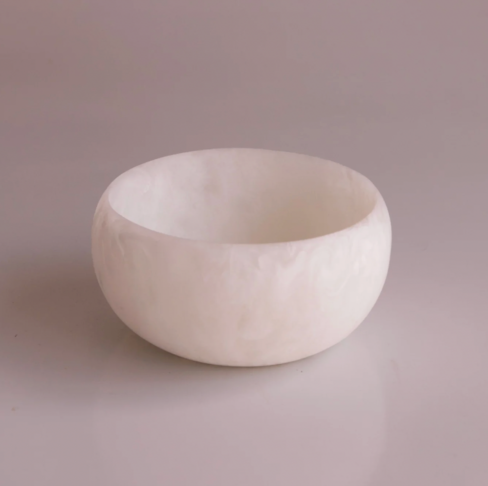 The Sorbet Mini Round Bowl in Coconut features a creamy white swirled resin design that brings fresh energy to the table. Perfectly sized for dips, condiments, nuts, or small snacks, it’s as versatile as it is eye-catching.