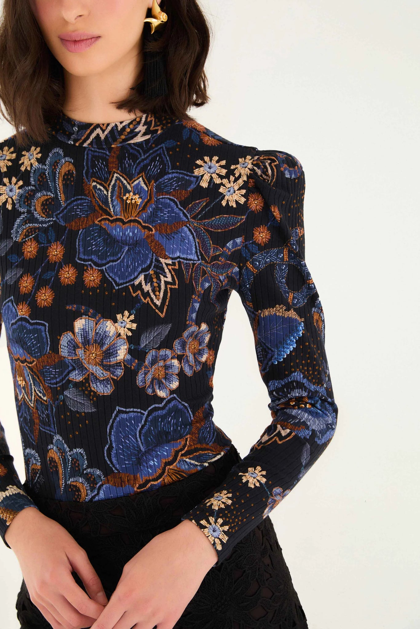 The Black Snakes Bouquet Organic Cotton Bodysuit is a captivating embrace of nature’s hues and textures. Crafted from 100% certified organic cotton, its high neckline and gently puffed shoulders sculpt an elegant silhouette. The dark base blooms with deep blue and warm brown florals intertwined with subtle serpent motifs, creating a playful yet sophisticated pattern. Softly ribbed, this bodysuit wraps you in responsible comfort with a touch of wild charm.