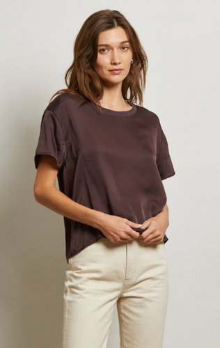 Perfectwhitetee- Satin Crew Tee in Cocoa