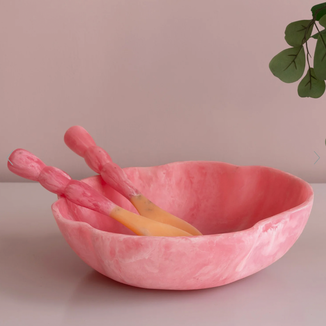 Brighten any setting with Raspberry. The RESIN Sorbet Large Wavy Round Bowl pairs its vivid pink hue with playful curves, making it ideal for salads, pasta, fruit, or festive entertaining.