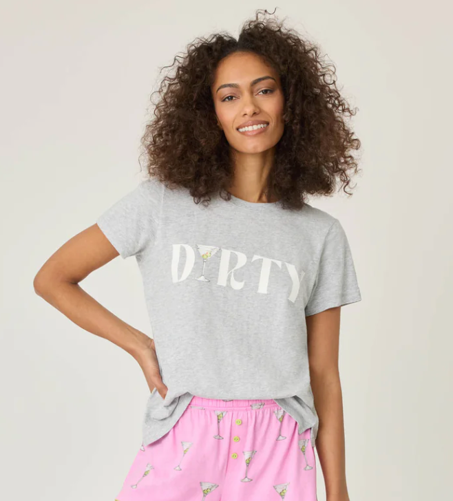 Cheers to cozy nights in! This martini-print pajama set is the perfect way to toast to relaxation. Made from a soft cotton-modal blend in bubblegum pink, tie waist pants are both comfy and cute. Piping detail adds a polished touch, while the breathable fabric ensures all-night comfort. Pair them together for a coordinated look that's perfect for laid-back lounging.
